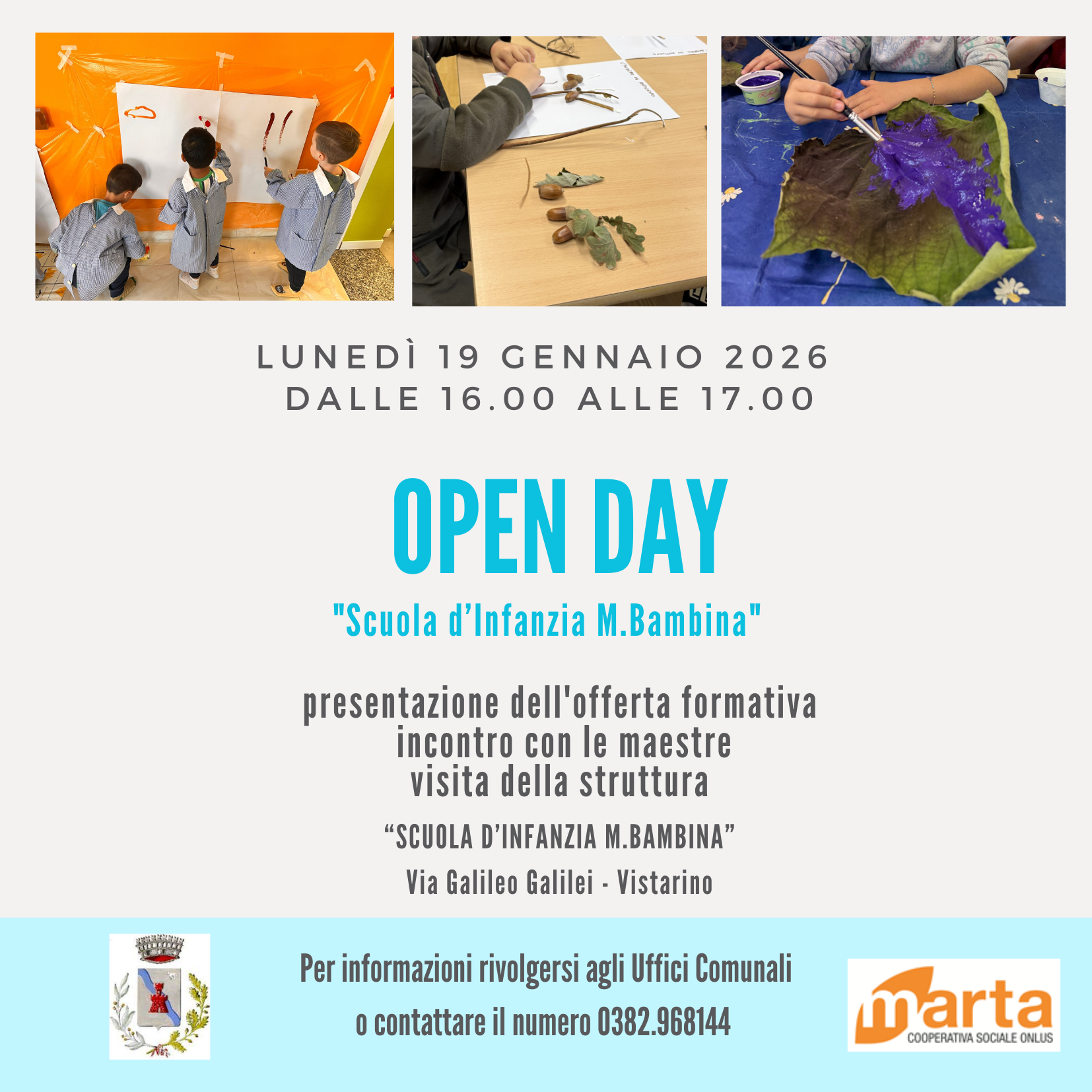 Lunedì 19 gennaio dalle ore 16.00 alle ore 17.00 presso la scuola dell'infanzia Maria Bambina.